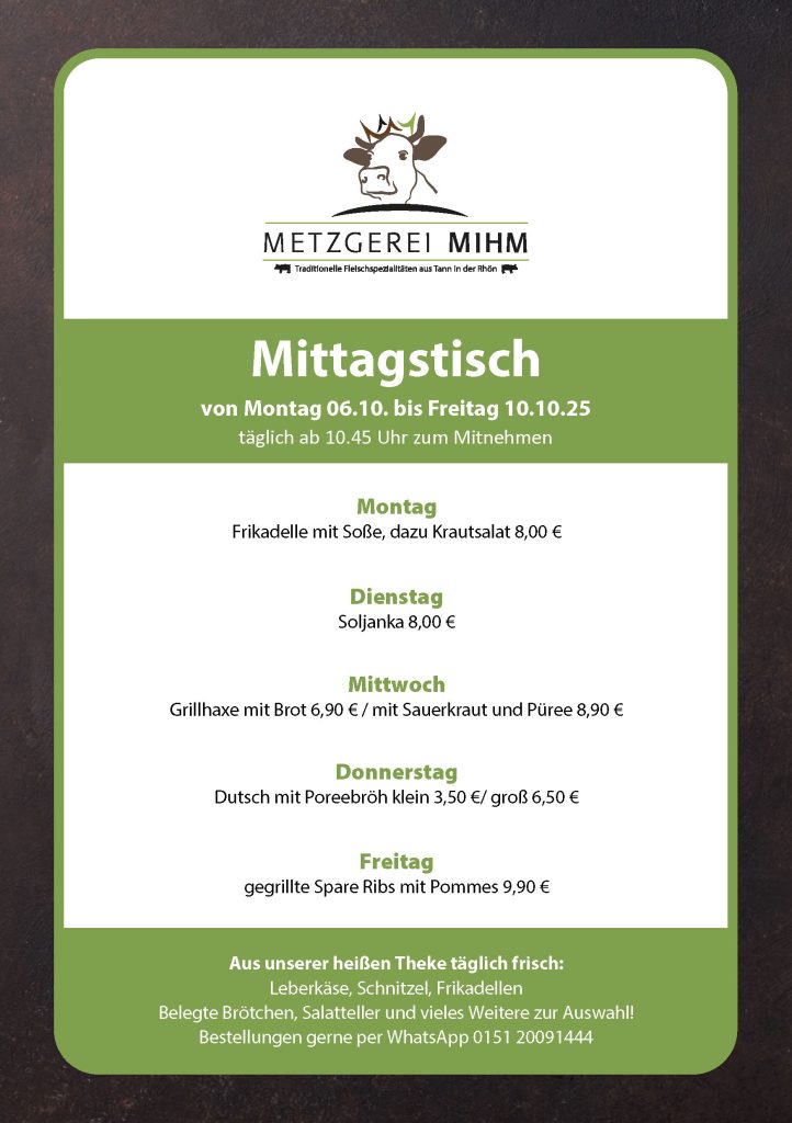Gültig für Donnerstag, 9. Oktober 2025 Jeden Donnerstag von 9 Uhr bis 13 Uhr fahren wir mit ausgewählten Spezialitäten in unserem Verkaufswagen auf den Hof von Frucht Hartmann in Fulda. Kommen Sie vorbei und lassen Sie sich nicht die leckeren Angebote entgehen!