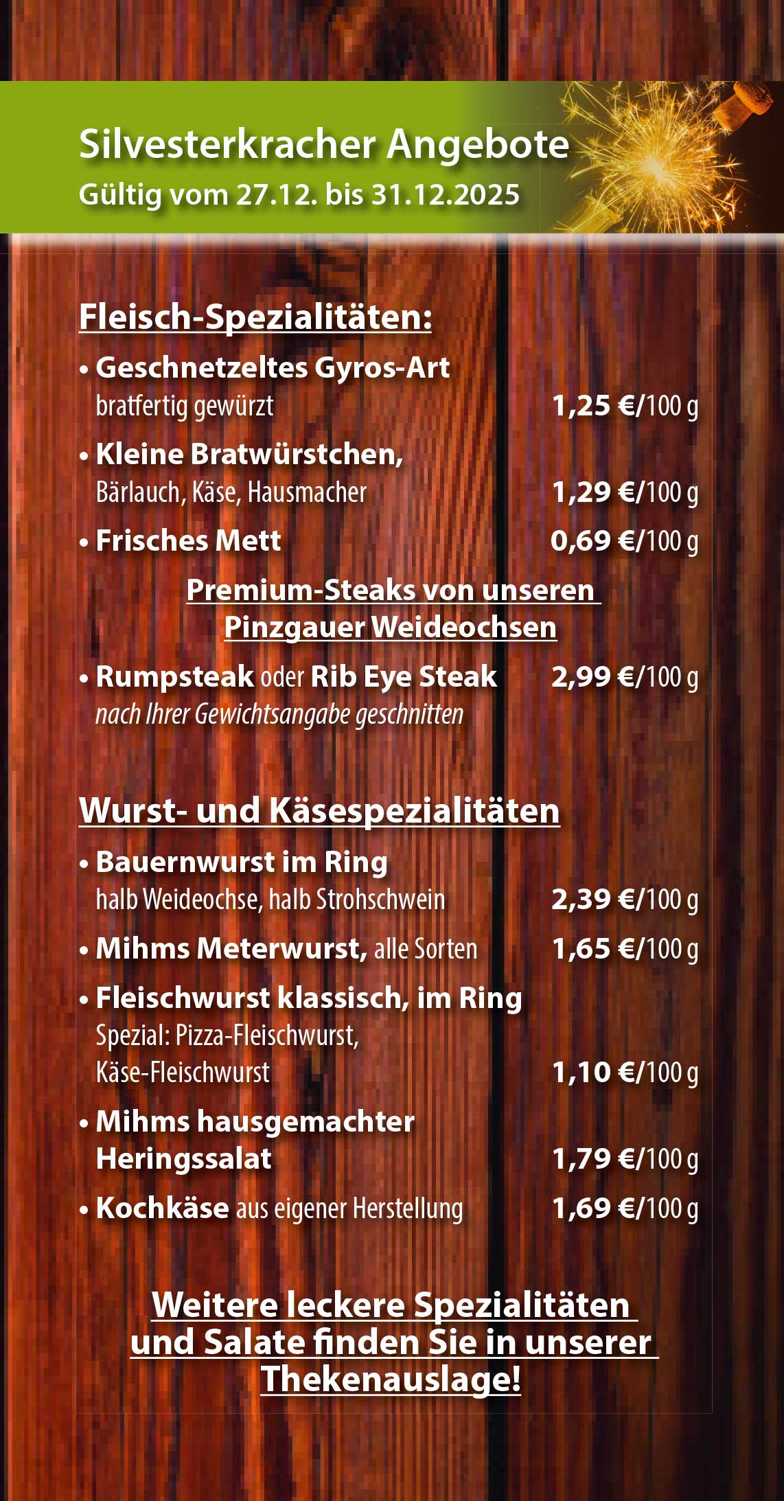 Entdecken Sie Mihms leckere Angebote. Gültig von Samstag, 27. Dezember bis Mittwoch, den 31. Dezember 2025.
